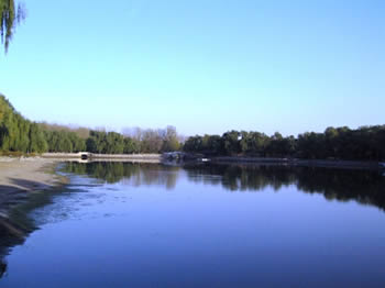 圓明園の静かな湖面