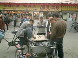 道端で象棋とその観戦に興じている人たちもいて、