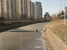 寒い中、それも、氷に穴を開けて、氷が割れて
