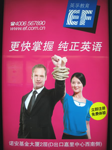 欧米人男性の先生と中国人女性の生徒の腕が、